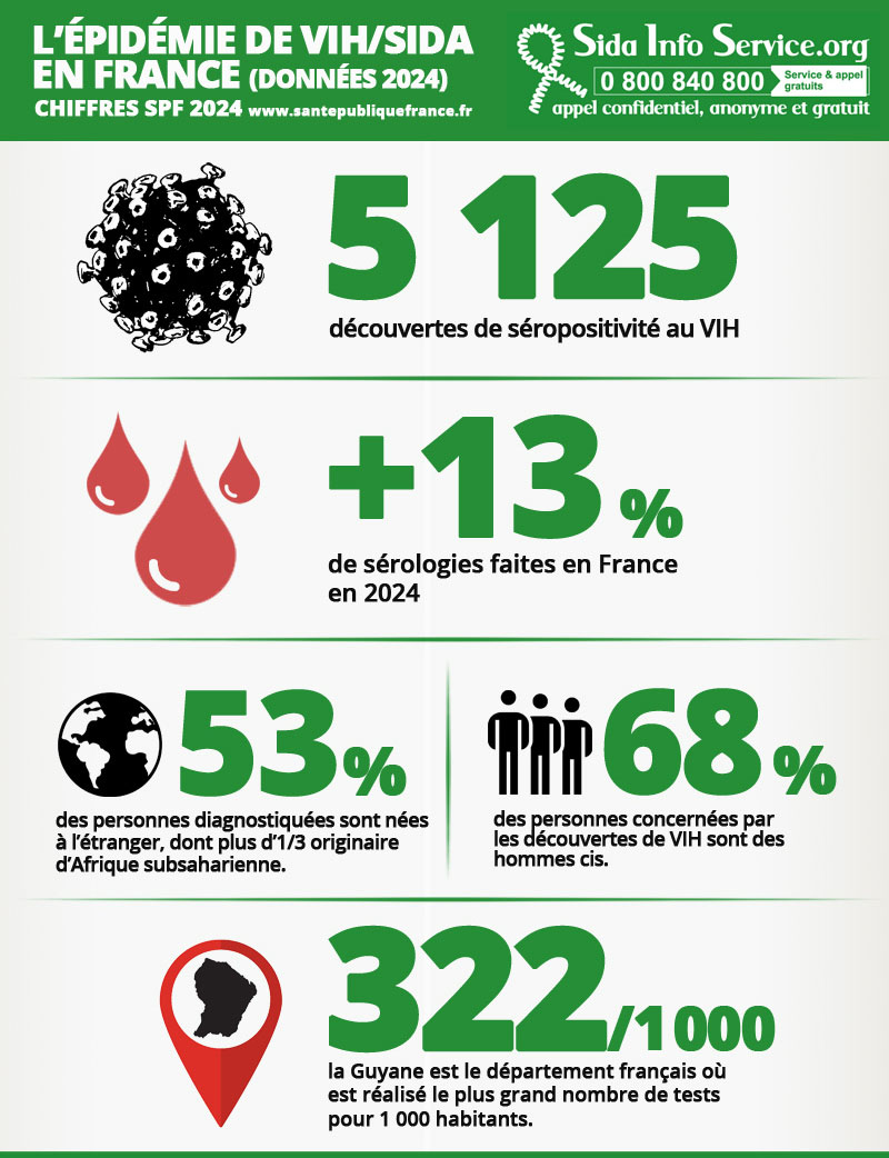 En France en 2024, 5 125 personnes ont découvert leur séropositivité au VIH (estimation).